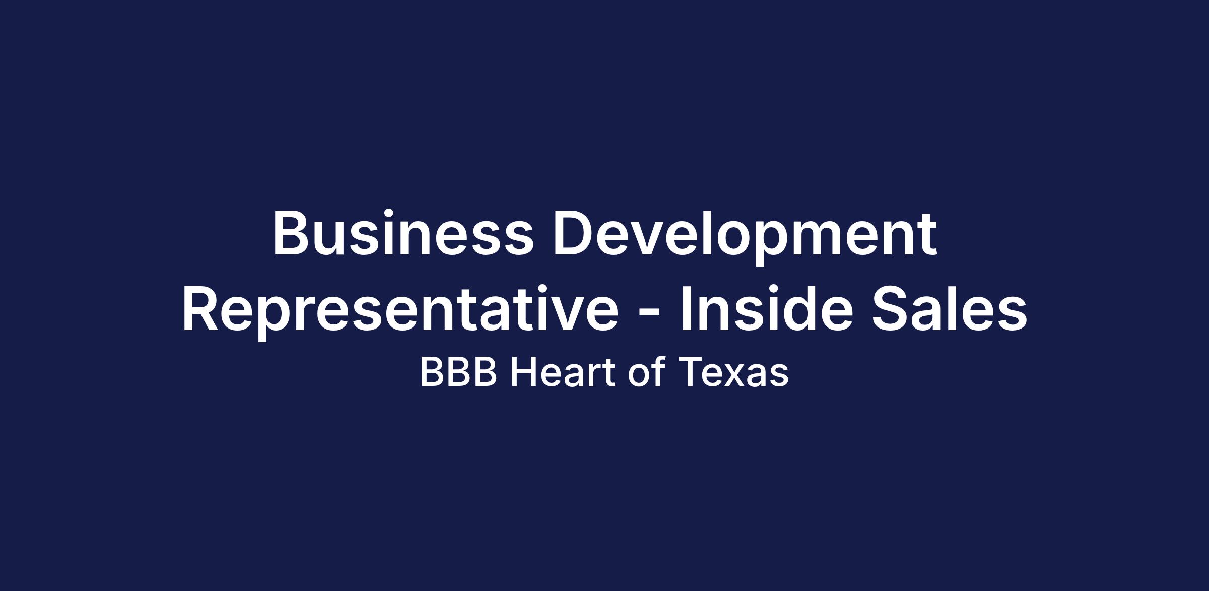 At BBB Heart of Texas, we are more than a trusted name—we are a mission-driven organization committed to advancing marketplace trust. Our Sales & Revenue team is nationally recognized for excellence, with multiple top performers ranked among the best in North America. We foster a culture of integrity, collaboration, and continuous growth!